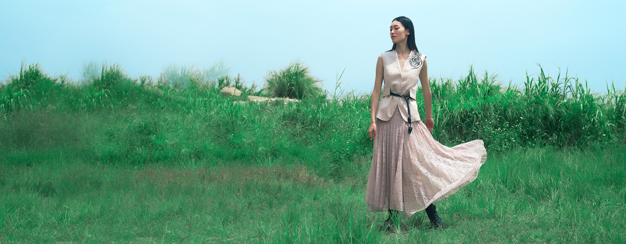 Rehumanize industrial workwear with the nature’s poetic beauty, creating a chic feminine utilitarian casual town wear.