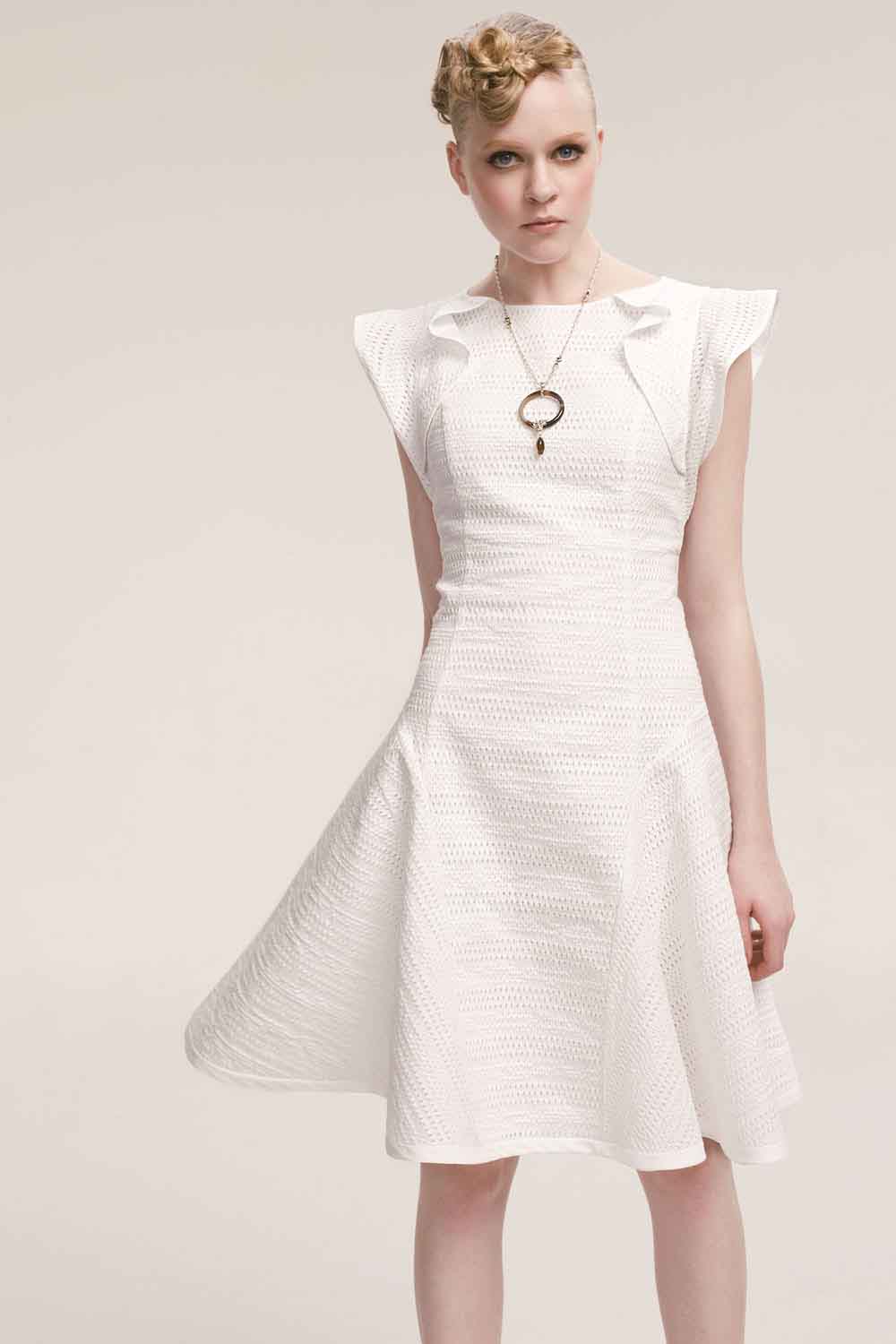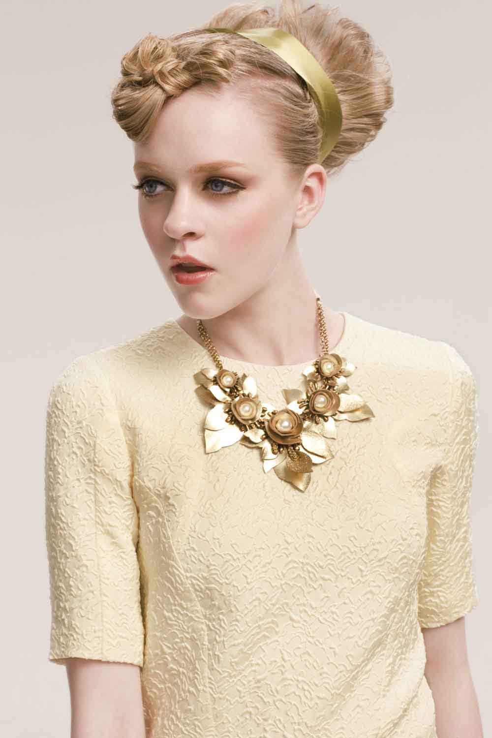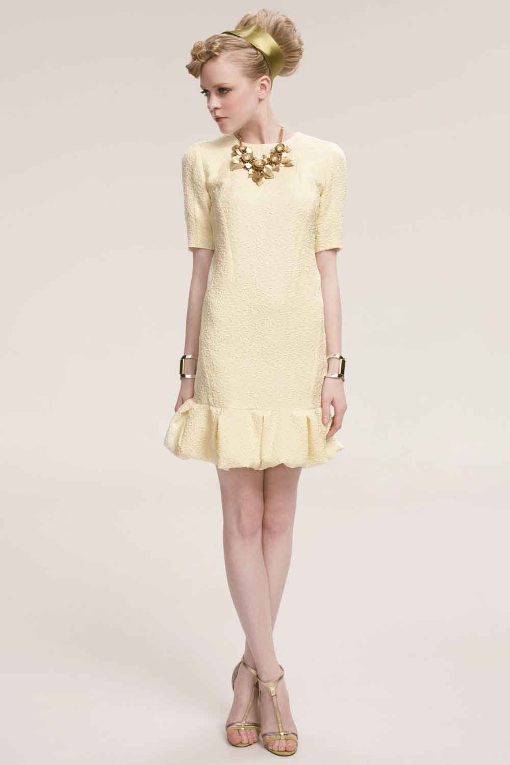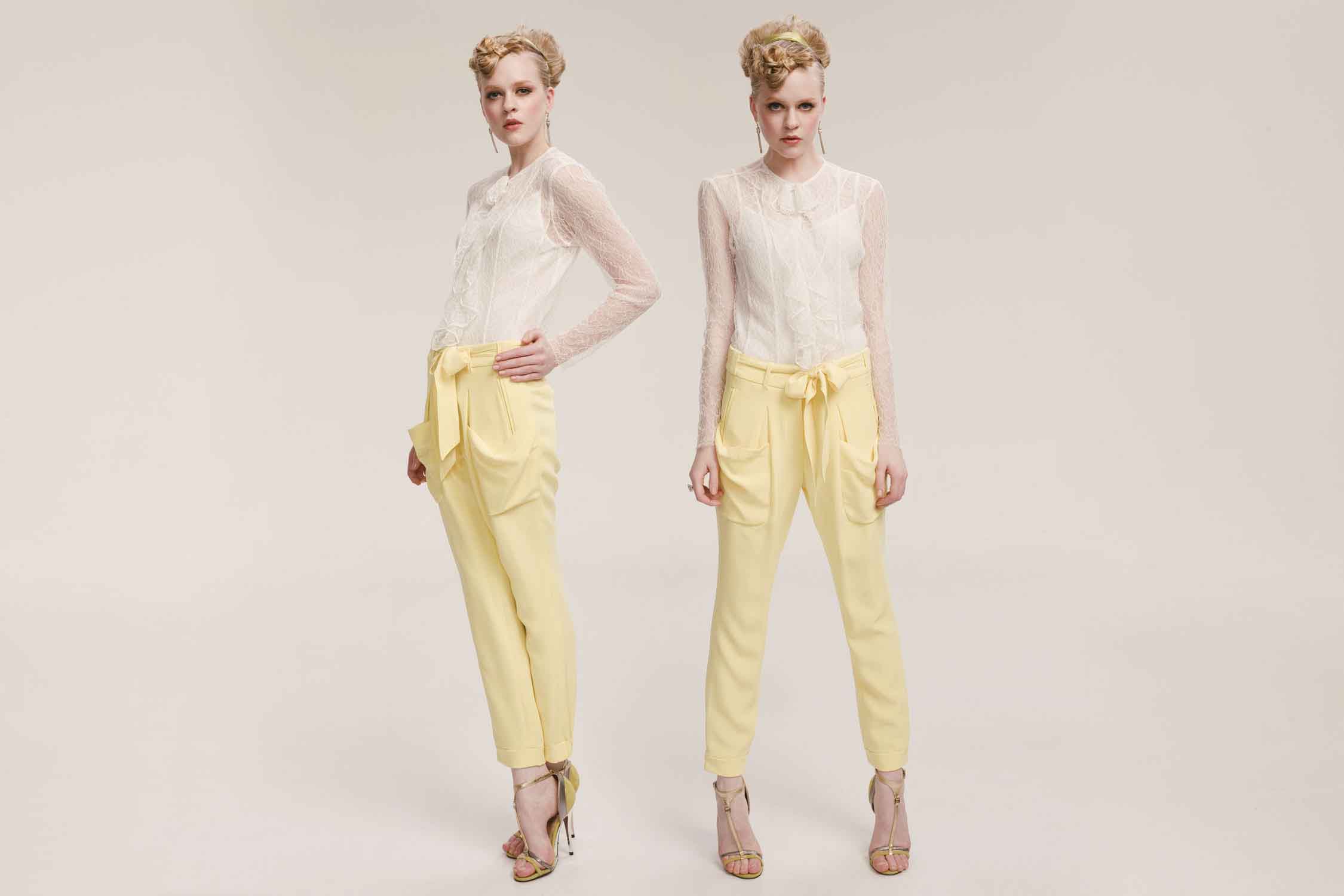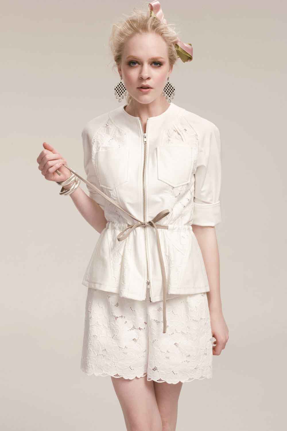 Celebrating spring with a juxtaposition of couture and casualwear, creating an elegant yet highly wearable urban collection. Couture fabrics; floral moiré, silk organza, rich jacquard, thick lace and opulent silk, are given an unusual casual interpretation. Thick couture lace is mixed with denim and cut to make sharp looking essembles, while fluid rich crepe de chine is tailored into functional cargo pants, and intricate embroidery is applied on casual tweed. Silhouette is a sporty yet elegant, with fit and flare being the predominate silhouette. Couture becomes casual and convenient for everyday dressing.