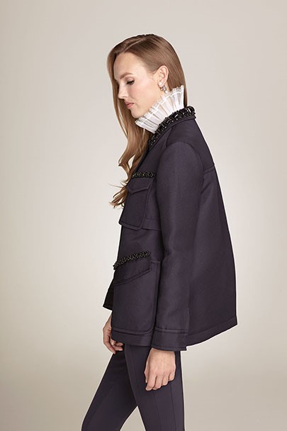 The fall winter collection is inspired by the nobility of aristocracy, representing the very best, most elegant and most stylish of its kind. Noble fabrics; plush velvet, decadent cashmere, refine organza, rich tweed and luxurious mink, are tailored meticulously into lush assembles for both day and night. Pleated organza collar is worn with jackets, sweater and coats, giving an air of magnificent to everyday life. Beadings in rich stones and sequences are not only limited to night time grandeur, but rather apply tastefully to daytime outfits. The collection is an aristocrat of women’s fashion